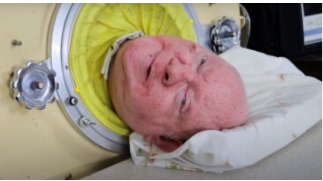 Cet Américain originaire de Dallas a contracté la poliomyélite, une maladie qui l’a paralysé du cou aux pieds, à l’âge de 6 ans. Depuis lors, il vivait dans ce que l’on appelle un “poumon d’acier”, une machine lui permettant de respirer. Imaginez une grande boîte métallique jaune, obligeant les patients à s’allonger à l’intérieur, avec l’appareil attaché fermement autour de leur cou.